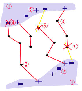 @まず、お互いに陣地をノートに書きます。どんな形でもOK. お互いにルールを決めて、書けばいいでしょう。 A戦闘機や戦車などを配備します。戦車はその場を動けないとか、 戦闘機は自由に動けるとか。その場に合ったルールを決めます。 別に決まったものはないので、自由です。今回は戦車(■)は動かない。 戦闘機(十字)は動ける。戦車を3台、戦闘機を3台とします。これで 準備完了。 Bいよいよ、スタート。ジャンケンで先攻後攻をきめます。まず、先攻から 該当の戦闘機や戦車にボールペンを立て、前に押し出すようにボールペンを 滑らせます。するとボールペンから奇跡を残しながら線が引けます。その最先端 に●印をつけます。(最先端は超細いのでお互いに確認するのがいいでしょう) これを順番に交互にしていきます。戦闘機は前線なので●印から継続して相手陣地まで 突入できますが、戦車は放射射撃となります。 Cこのようにして相手の戦闘機、戦車をボールペンが貫通すれば、その戦闘機 戦車は破壊されます。戦車は、動かないので陣地ないで貫通されればアウト。 D戦闘機は最前線に出動しているので、最先端の●印がボールペンで貫通されればアウト。 Eこのようにして、どちらかの軍備が全滅すれば、勝敗を決します。 |